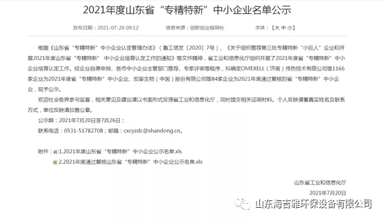 近日,我公司被山东省工业和信息化厅评为2021年度省“专精特新”中小企业。